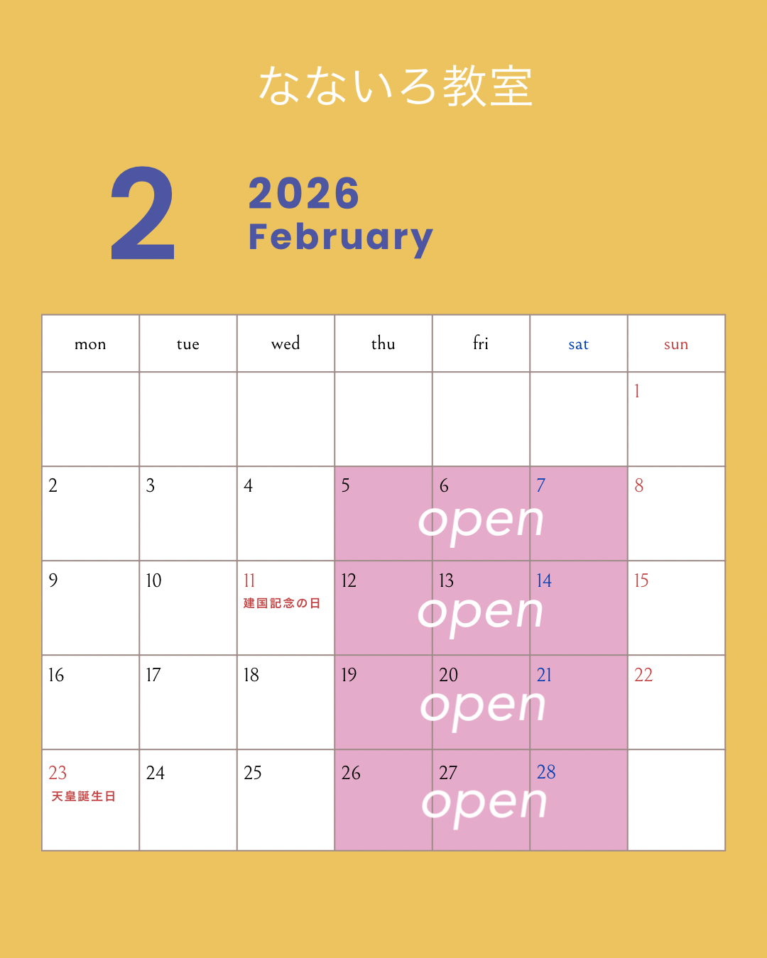 2月レッスン予定日