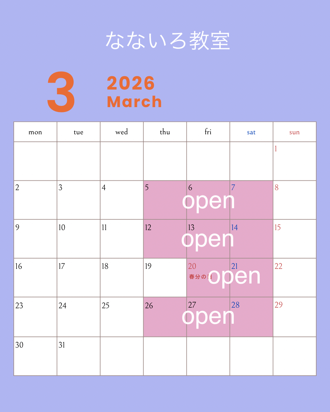 3月レッスン予定日